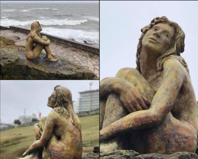 El misterio continúa en Mar del Plata: decenas de personas se acercaron a sacarse fotos con la misteriosa escultura de una mujer sentada que apareció el fin de semana mirando la costa en el Paseo de Playa Chica, a metros de La Perla, y de cuyo creador no se conoce rastro.
