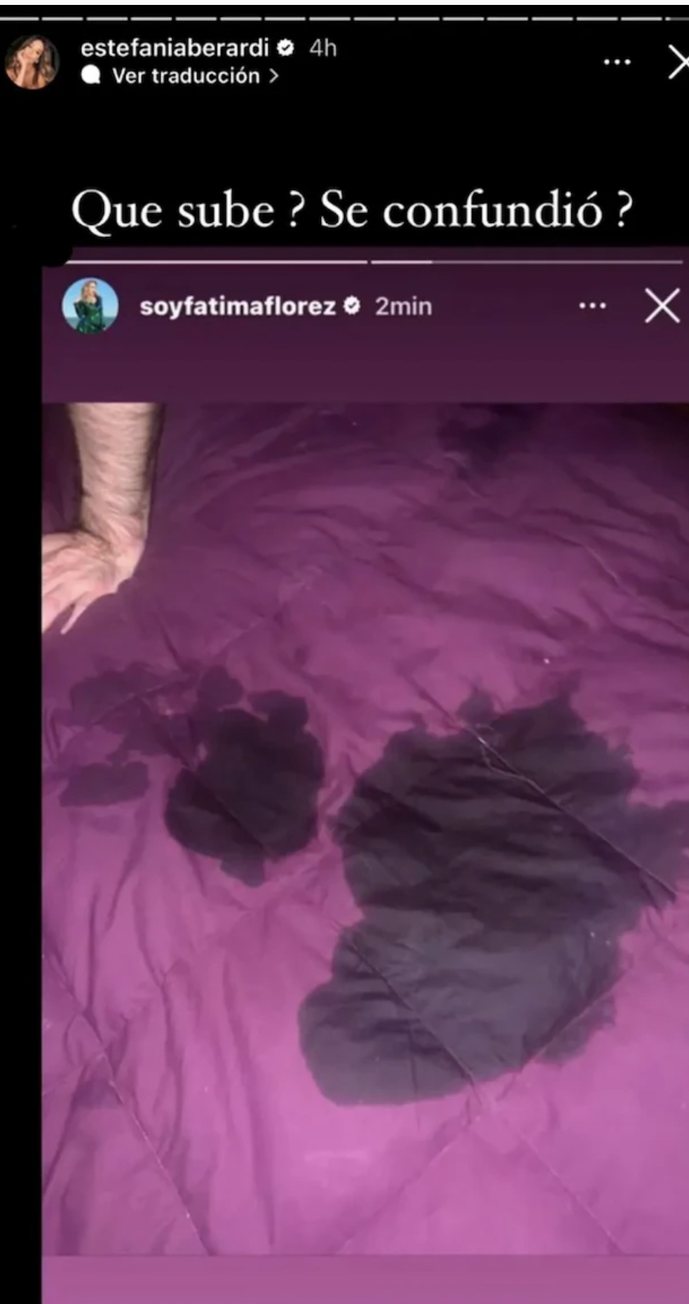 La foto llamó la atención dado que se podía ver una tremenda mancha sobre el acolchado de la cama de Fátima, y hacia el costado el supuesto antebrazo y mano de Milei. Ante los múltiples interrogantes sobre una práctica de sexo tántrico, la humorista salió a dar explicaciones.